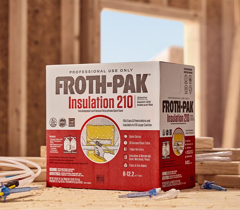 Wall cavities are more than space. Each unfilled cavity is a pocket of air that drags down the energy efficiency of a home. The Froth-Pak™ Insulation Spray Foam fills, seals and insulates these kinds of gaps with ease and at a fraction of the cost of a drum and rig system.