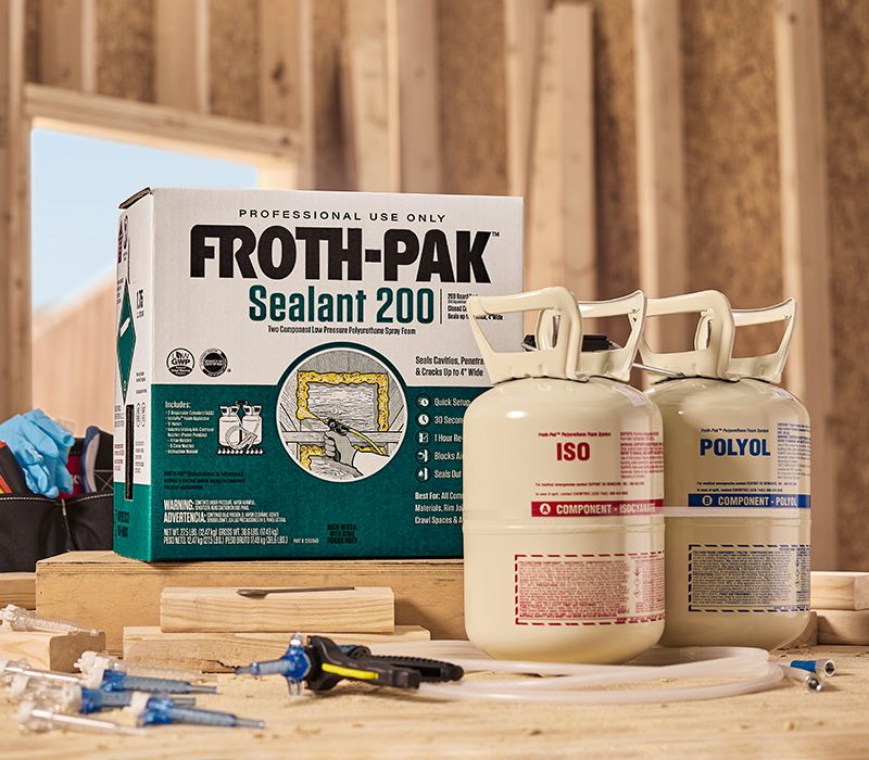 Froth-Pak™ Sealant 200 is a two-component, quick-cure polyurethane foam that can be used to "picture frame" cavities and to fill penetrations and cracks up to 2” thick by 4” wide. Froth-Pak™ Sealant is a chemically cured foam designed to significantly reduce curing time. It dispenses, expands, and becomes tack-free in seconds, saving pros time on the Jobsite.